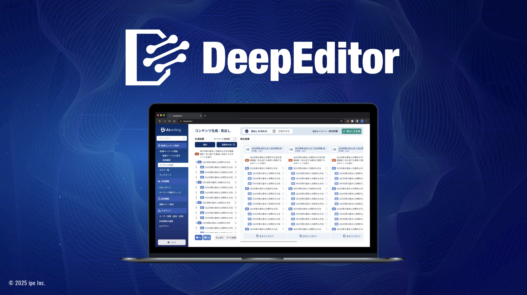 AIライティングツール「DeepEditor」の導入効果や具体的な活用シーンを、図解を交えながら分かりやすくまとめたサービス資料です。
